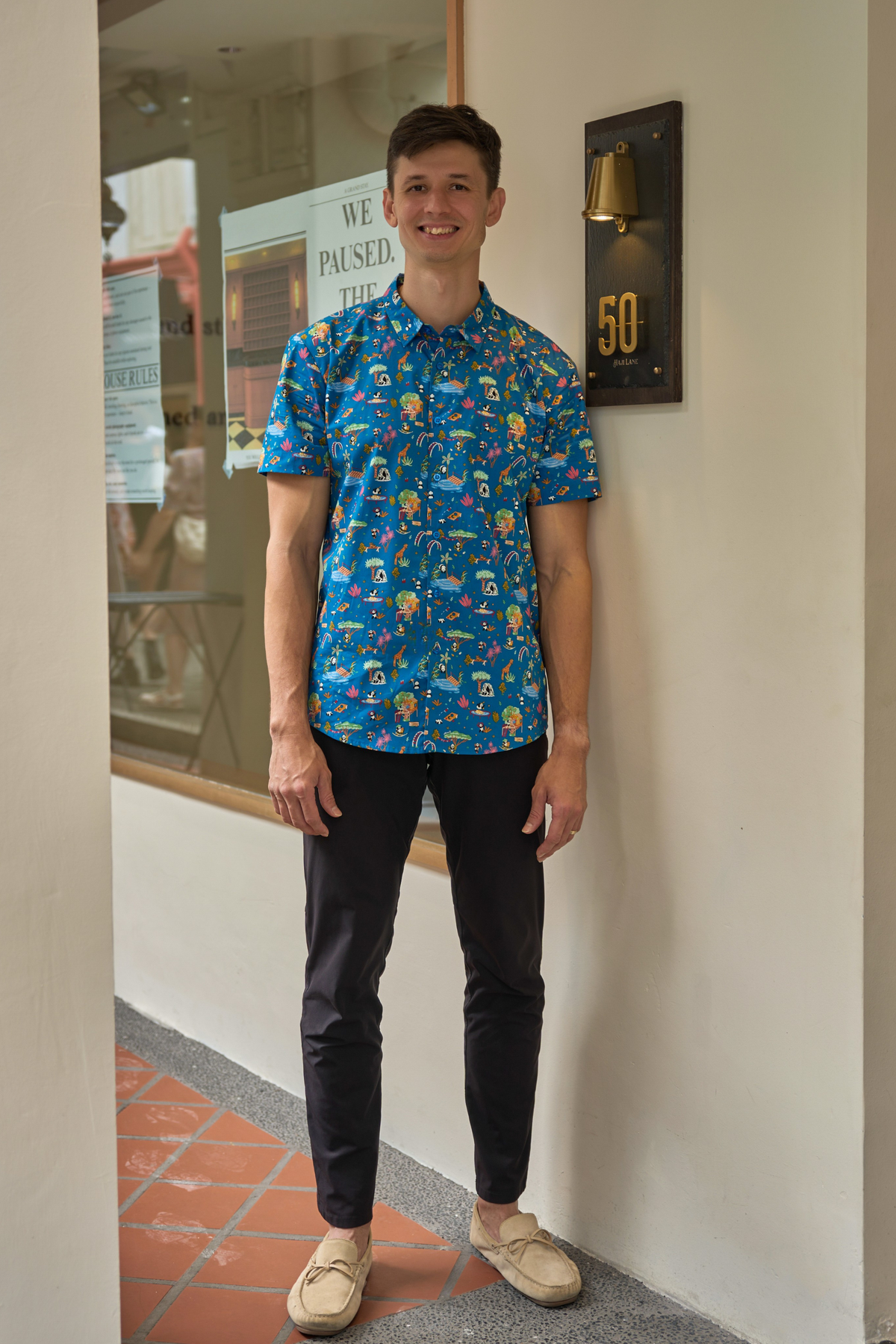 - A short-sleeved smart casual shirt for men. Features a sleek regular collar and a utilitarian pocket on the left side of the shirt.