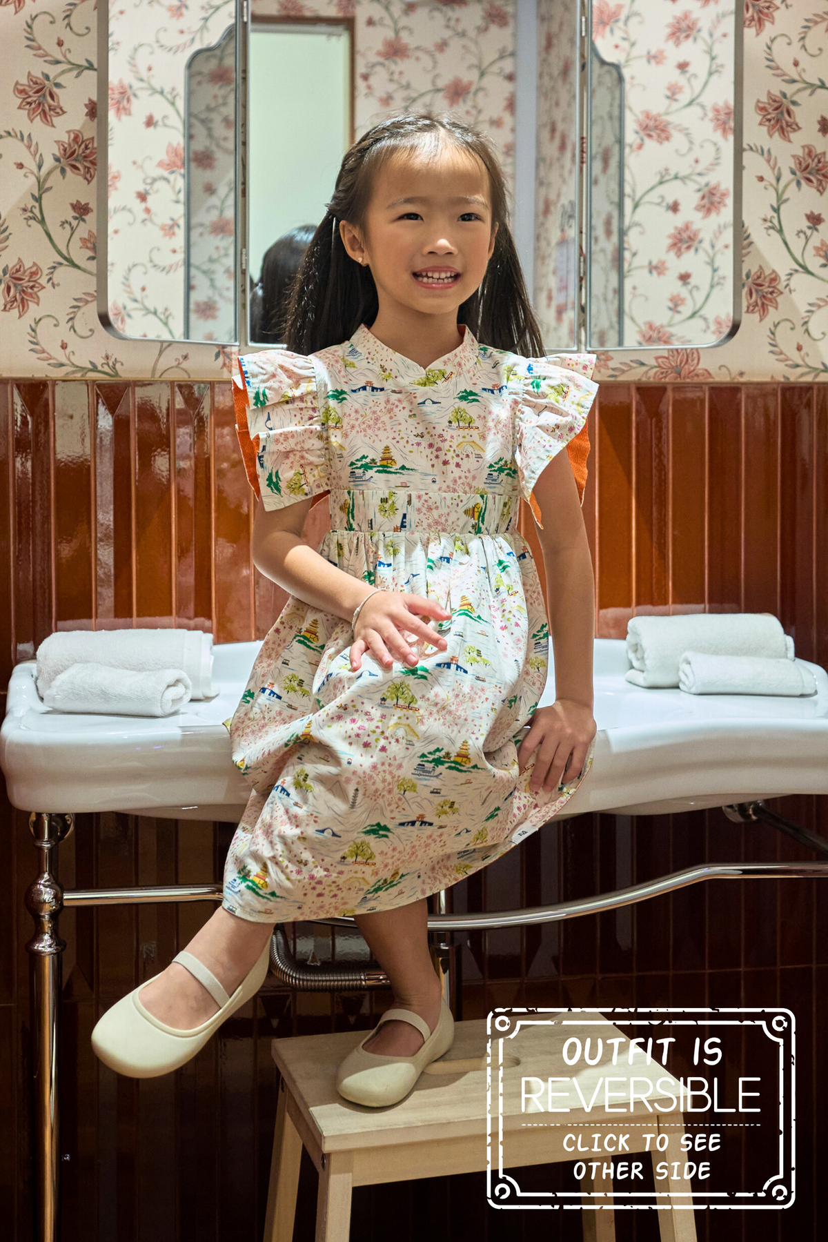 A modern cheongsam with exaggerated flared sleeves, a fitted waist, and a Mandarin collar. This design runs small and you may consider getting a size up. Please check the size chart to be sure.