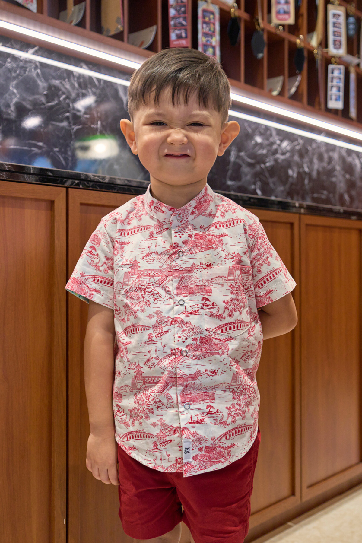 Our A Straits Tale Toile print is a whimsical ode to the Straits, imagined through a tapestry of heritage and symbolism. Designed in a classic toile style, it depicts scenes of life along the waterways: bridges arching gracefully over rivers, sampans gliding across calm waters, and rows of shophouses and pagodas that root the story in place.