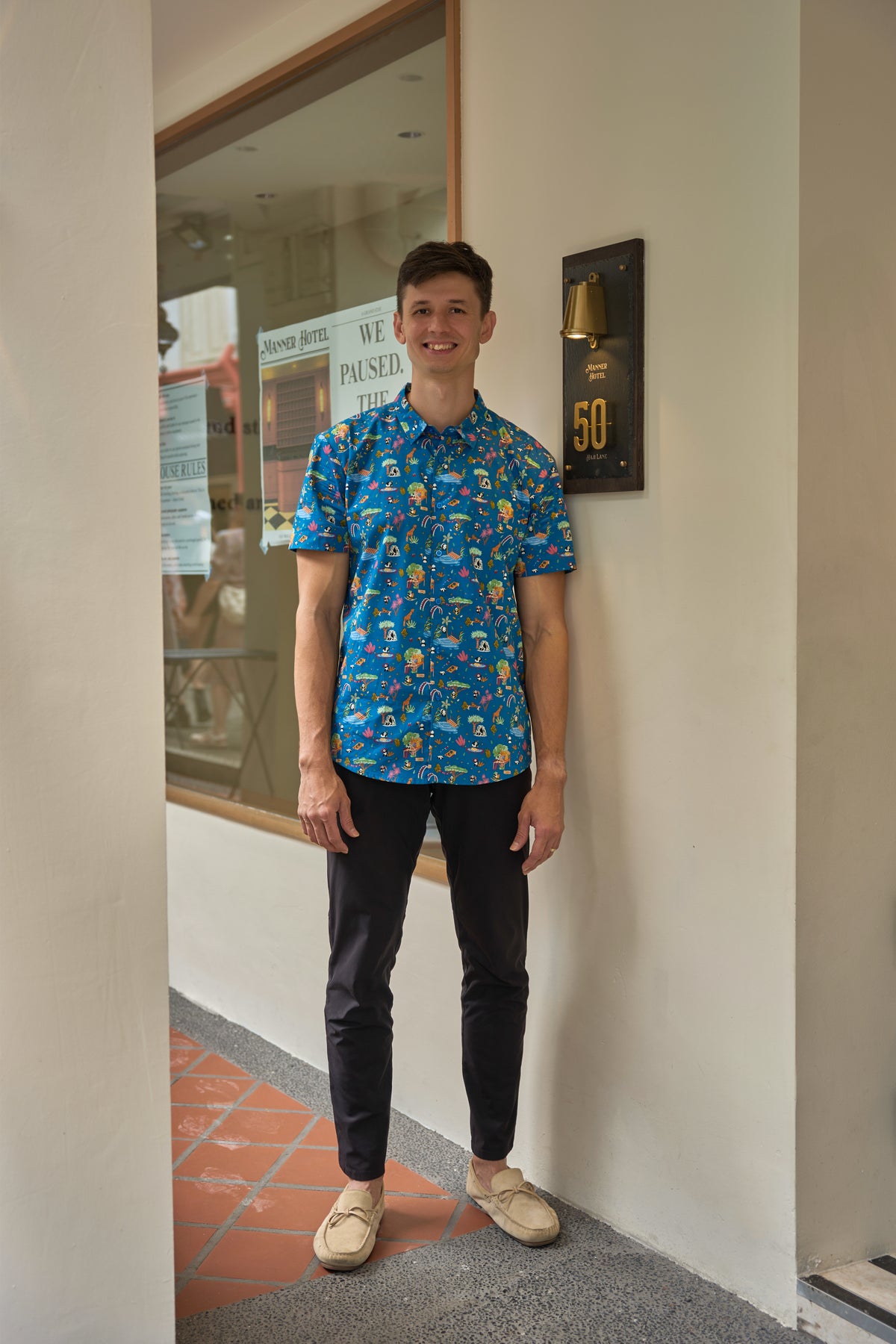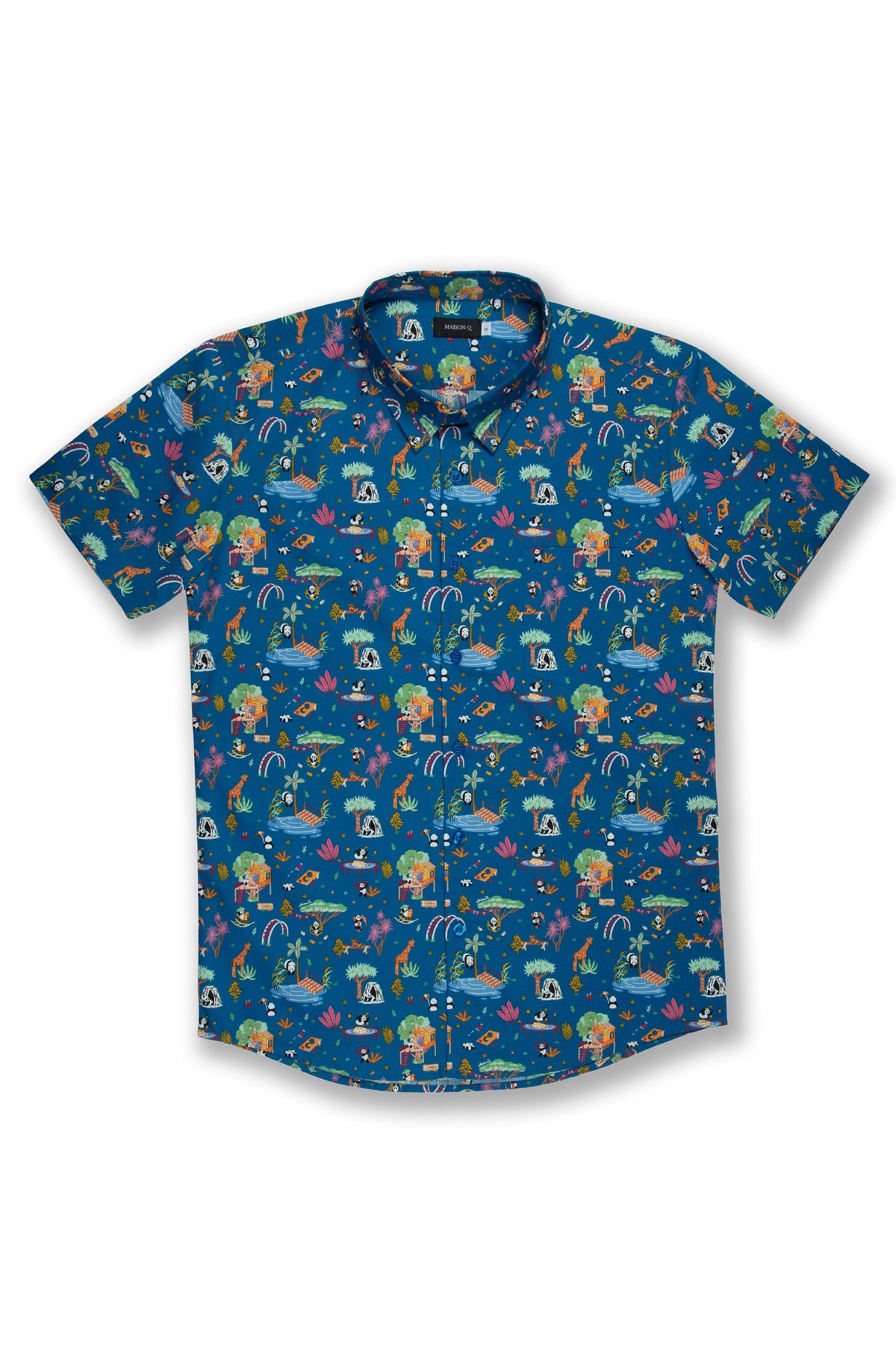 - A short-sleeved smart casual shirt for men. Features a sleek regular collar and a utilitarian pocket on the left side of the shirt.