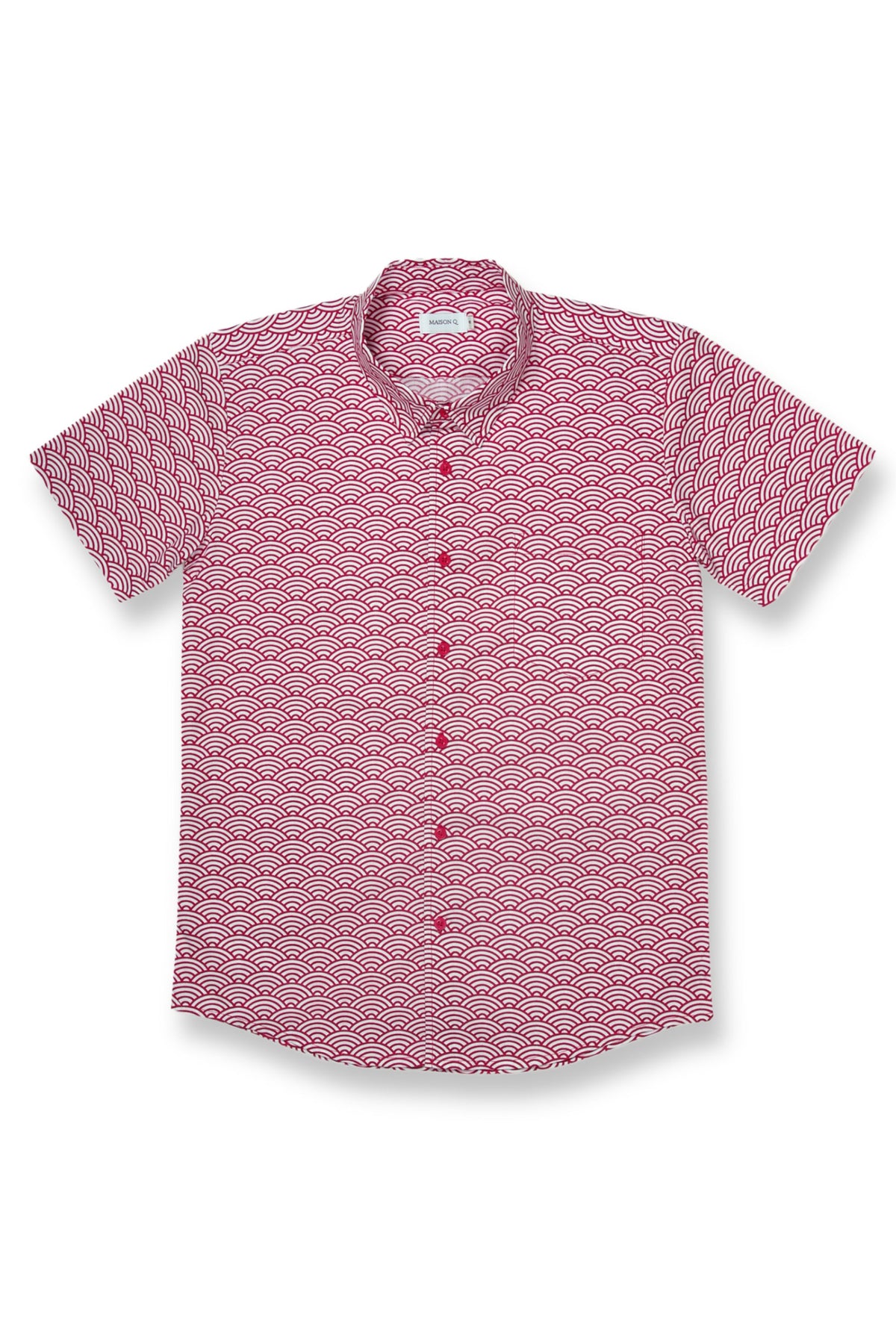 The red scallop print draws inspiration from the seigaiha, a traditional wave-like pattern of stacked circles. The high points in the seigaiha represent the peaks of waves, symbolising perseverance, resilience, and surges of good fortune. This print holds a special place at Maison Q, as it was the first featured in our inaugural collection launched in 2015.
