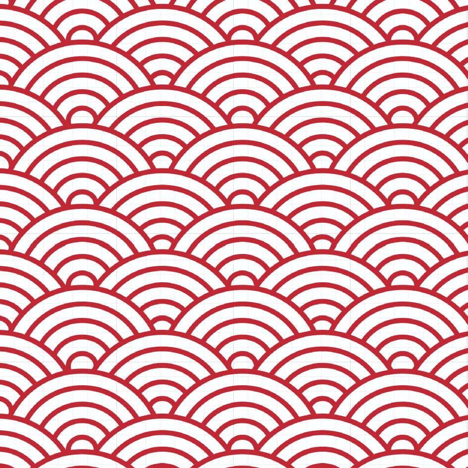 The red scallop print draws inspiration from the seigaiha, a traditional wave-like pattern of stacked circles. The high points in the seigaiha represent the peaks of waves, symbolisng perseverance, resilience, and surges of good fortune. This print holds a special place at Maison Q, as it was the first featured in our inaugural collection launched in 2015.