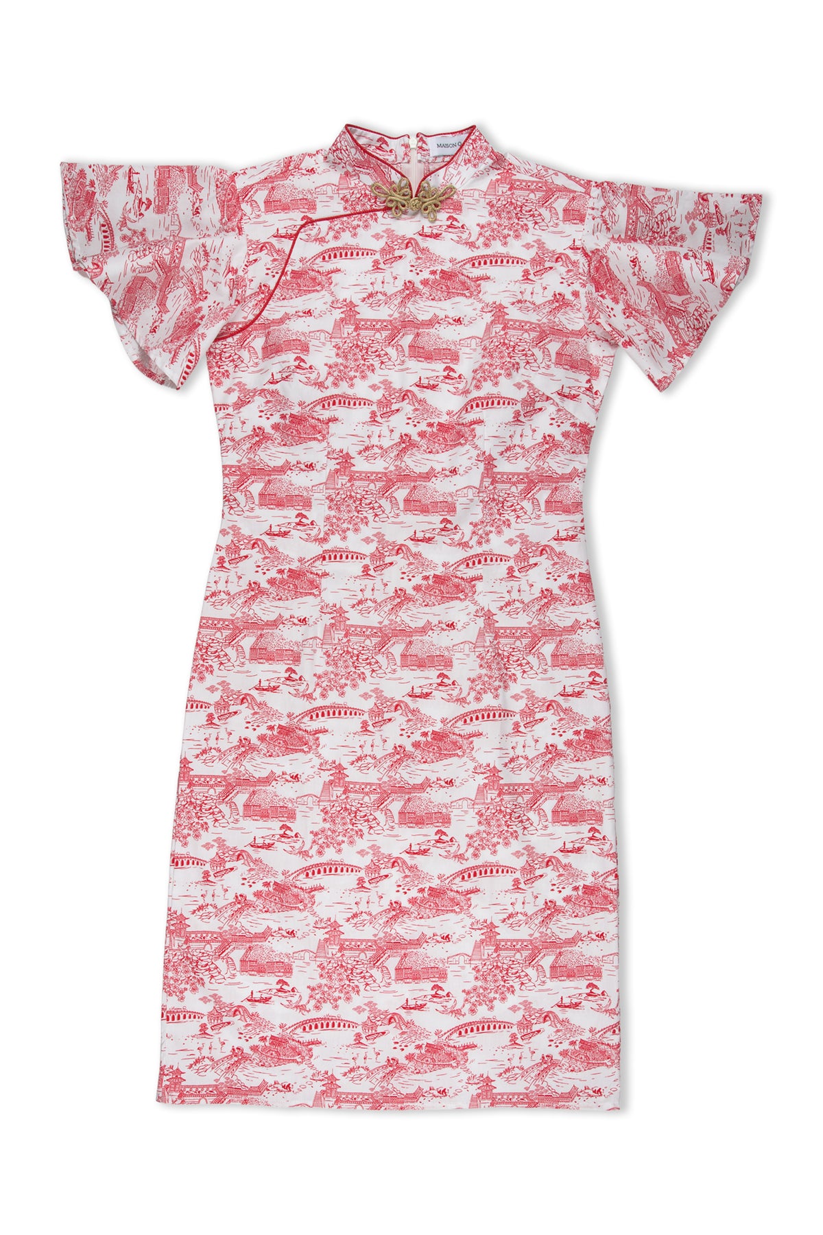 A fitted mid-length cheongsam that accentuates and complements the waistline with darts at the front and back of the dress.